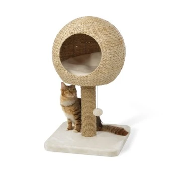 Sowohl die Höhle als auch der Kratzstamm des AniOne Kratzbaums Taro sind aus natürlicher Wasserhyazinthe gefertigt, die dem Kratzbaum nicht nur seine hochwertige und moderne Optik verleiht sondern zudem noch für eine hohe Luftdurchlässigkeit der Kuschelhöhe sorgt. Diese ist mit einem weichen und bequemen Liegekissen ausgestattet, das bei Bedarf auch ganz leicht entnommen und bei 30° gewaschen werden kann. Der Kratzbaum eignet sich ideal für kleine bis mittelgroße Katzen und findet aufgrund seiner Größe selbst in kleinsten Haushalten Platz. So schenkt dieser AniOne Kratzbaum nicht nur dank seines wunderschönen Aussehens und seiner natürlichen Materialien lange optische Freude sondern bietet Ihrer Samtpfote auch genau das was sie braucht: Eine kuschelige Höhle zum Zurückziehen und Beobachten sowie robustes, umweltfreundlicheres Sisal für ausgiebigen und langanhaltenden Kratzspaß.