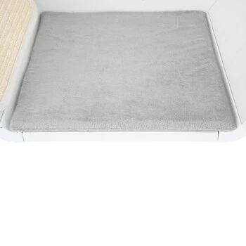 Inklusive Kissen für hohen Liegekomfort und Kratzteppich für die tägliche Krallenpflege. Die Anordnung der Elemente (Einstiegslöcher, Kissen und Kratzteppich) kann individuell angepasst werden, je nach persönlichem Geschmack oder den Bedürfnissen deiner Katzen.