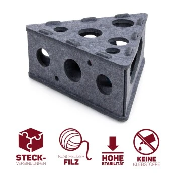 Außerdem ist Filz ein sicheres Material für Katzen. Es splittert oder zerbröckelt nicht. Das CanadianCat® Filz-Spielzeug ist zudem auch noch stylisch! Das dreieckige Design erinnert an ein Käsestück ohne dabei kitschig zu wirken. Ein Katzenspielzeug, welches sich ideal in jeden Einrichtungsstil passt.