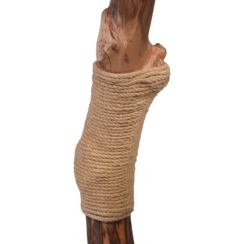 Dieser Design-Kratzbaum hebt sich von Standardmodellen vor allem durch die Verwendung hochwertiger Naturholzstämme ab. Diese Kratzstämme sehen nicht nur toll aus, sondern bieten Ihrem Liebling ein naturnahes und beständiges Kratzgefühl. Jeder Stamm ist durch seine Wuchsform unterschiedlich und ein Unikat. Stellenweise sind sie mit Jute umgeben, um eine optimale Krallenpflege zu unterstützen und die Dauerhaftigkeit des Kratzbaums weiter zu erhöhen. Die flauschige Liegefläche, sowie das Körbchen bieten Platz zum Schlafen und Relaxen und sind eine willkommene Klettermöglichkeit. Darüber hinaus läd der Spielball Ihren Stubentiger zum Herumtoben ein. Die Holzbestandteile sind FSC®-zertifiziert, wodurch eine nachhaltige und umweltfreundliche Forstwirtschaft garantiert wird. Die Bodenplatte ist ca. 50 x 40 cm groß, wobei der Kratzbaum ca. 99-109 cm hoch ist und etwa 8,6 kg wiegt.