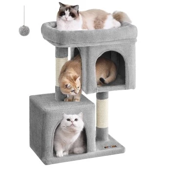 – Da Katzen gerne springen und spielen, befestigen Sie den Kratzbaum bitte mit dem mitgelieferten Kippschutz an der Wand, um ihn sicher zu verwenden.