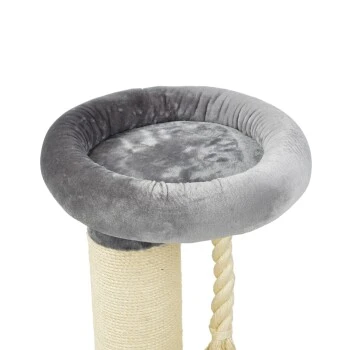 Der MORE Kratzbaum Bente vereint moderne Optik mit praktischen Funktionalitäten: edles dunkelgraues Plüsch sowie das hochwertige helle Sisal sorgen dafür, dass sich der Kratzbaum optisch in jeden Raum perfekt einfügt. Funktional sticht der Kratzbaum vor allem durch seine extra breiten Kratzstämme mit einem Durchmesser von ca. 20cm hervor, die darüber hinaus auch mit robustem Sisal (ca. 8cm) versehen sind. So finden besonders große Katzen ausreichend und langfristig die Möglichkeit ihren Kratztrieb angemessen auszuleben. Die besonders großzügige Liegefläche an der Spitze des Kratzbaums bietet ausreichend Platz zum Liegen, Entspannen, Schlafen und Beobachten. Das kuschelweiche Plüschkissen lässt sich bei Bedarf auch ganz einfach abnehmen und bei 30° waschen, sodass lange Kuschelfreude garantiert ist. Als tolles Highlight verfügt der MORE Kratzbaum Bente auch noch über ein extra dickes und robustes Spielseil aus Sisal, das für zusätzlichen Beschäftigungs- und Spielspaß sorgt.