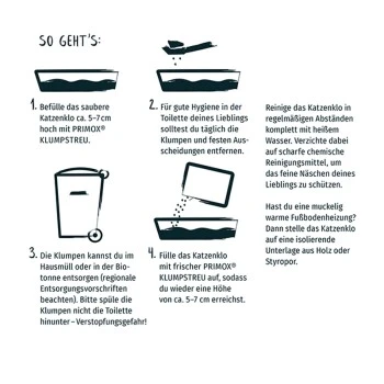 PRIMOX® KLUMPSTREU Babypuder-Duft + Silikat nimmt es mit allem auf. Nun ja, vielleicht nicht mit einem Wasserfall, aber ganz bestimmt mit den täglichen Ausscheidungen deiner Katze. Sie bindet Feuchtigkeit optimal und sorgt dank 3 % Silikatanteil für eine extrem gute Geruchsbindung. Die naturbelassen Tonkügelchen erzeugen kleine, feste und gut zu entnehmende Streuklumpen – dadurch ist PRIMOX® KLUMPSTREU Babypuder-Duft + Silikat super ergiebig und riecht außerdem auch noch angenehm nach Babypuder. Ach, und weil du die Toilette seltener komplett reinigen musst, hast du auch mehr Kuschelzeit mit deinem Liebling.